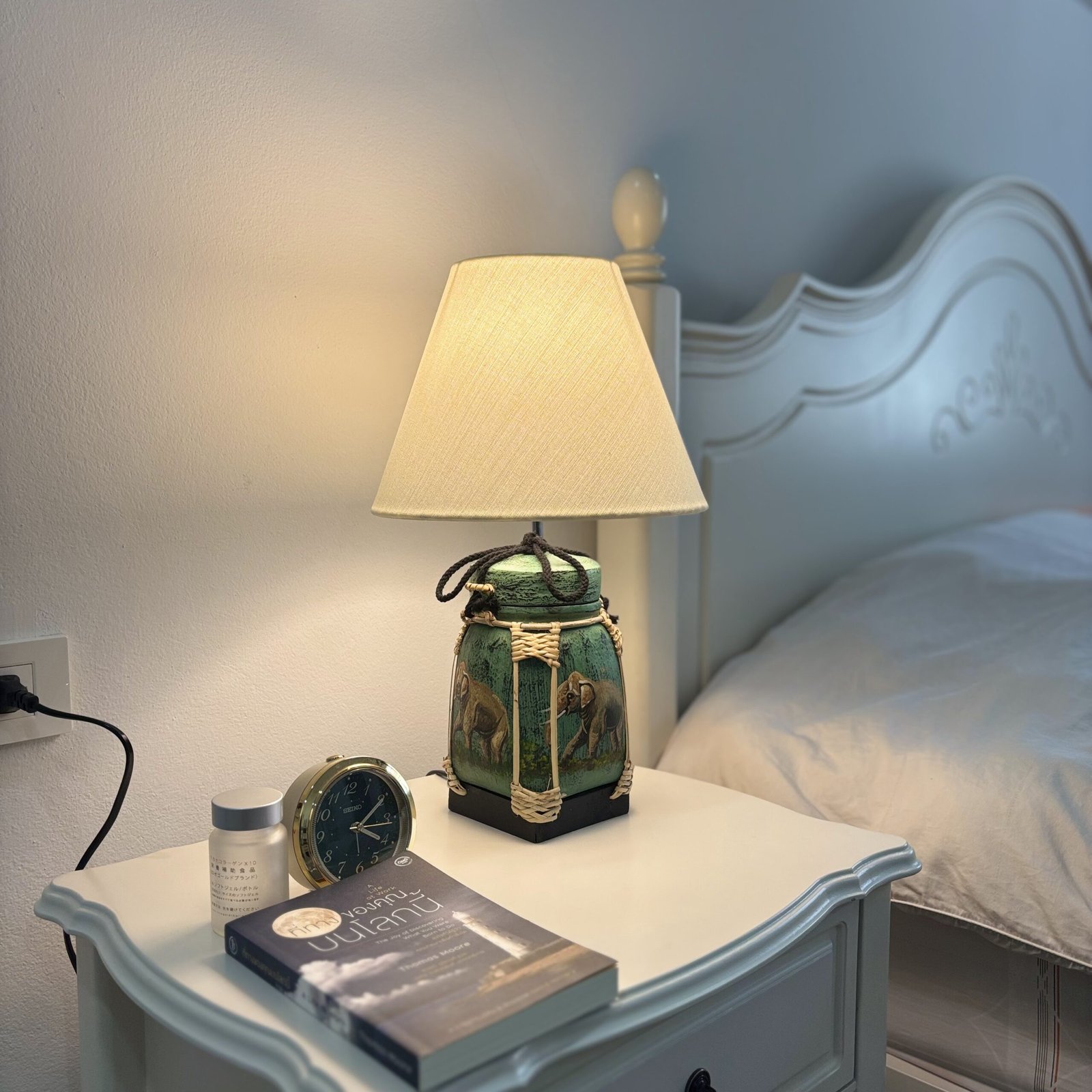 Topped with a soft fabric lampshade, this lamp creates a warm, inviting ambiance, making it ideal for bedrooms, living rooms, or workspaces. Its intricate details and cultural significance make it a perfect decor piece or a thoughtful gift for any occasion.
